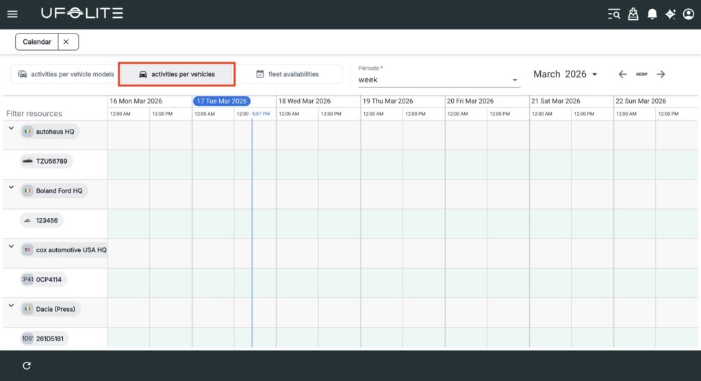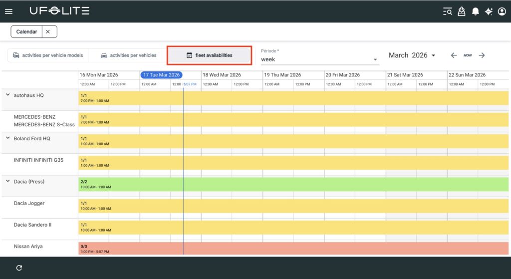 Go to Menu → Fleet → Calendar.