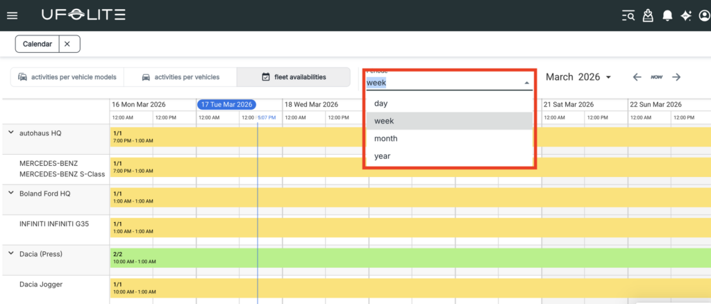 The fleet calendar gives you a live operational picture of your entire fleet — what’s booked, what’s available, and what’s happening when. It’s your primary tool for spotting gaps, planning ahead, and avoiding conflicts.